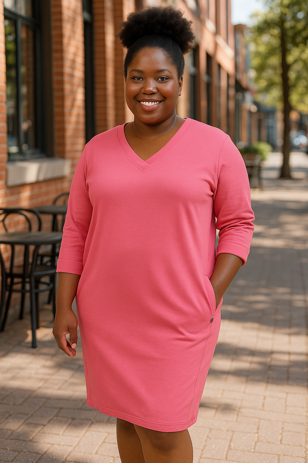 Confort et style réunis dans cette robe en coton au look décontracté. Sa coupe droite, son col en V et ses manches 3/4 en font une pièce idéale pour tous les jours.